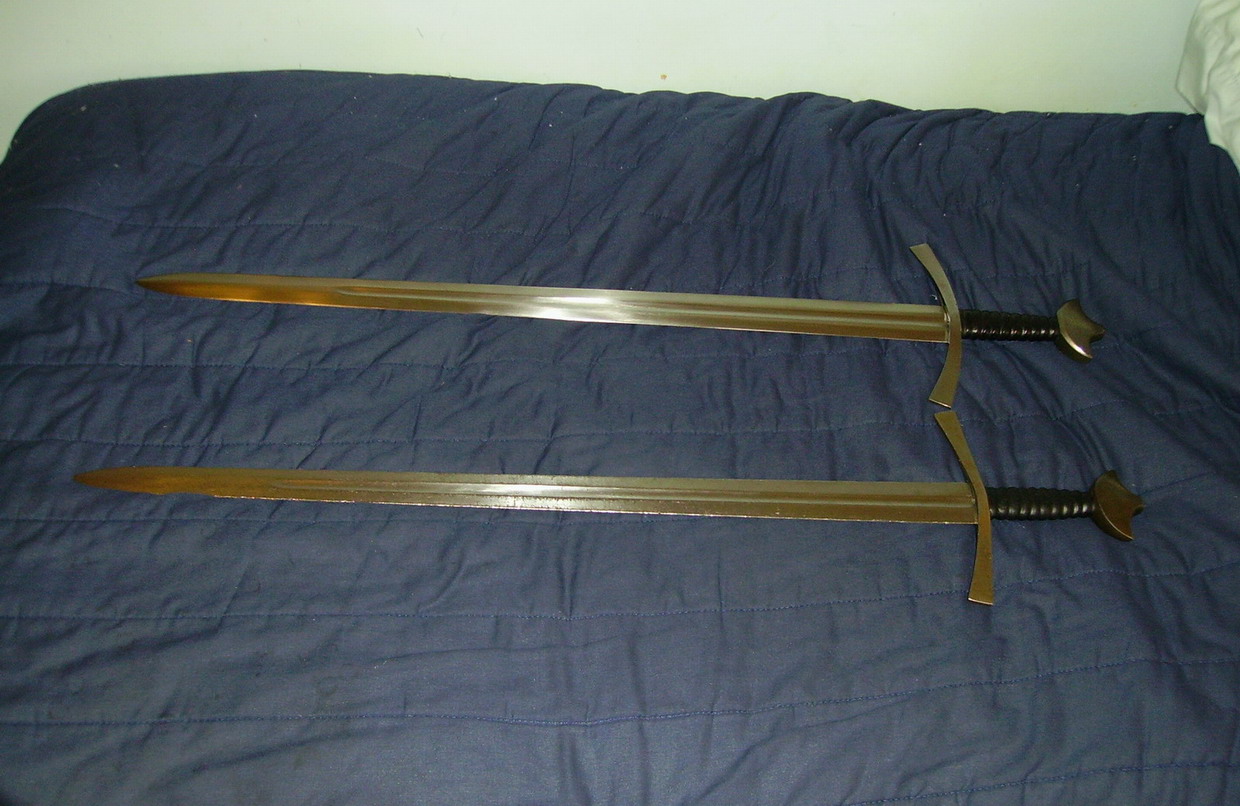 Weight: Sword #1: 2 lbs, 15 oz; Sword #2: 3 lbs, 3 oz.