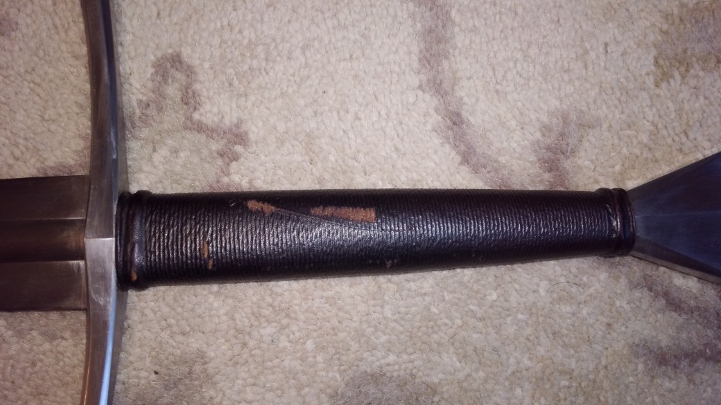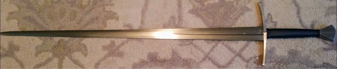 Selling my Albion Sempach hand and a half sword with a dark red grip. The handle has some minor scraping on one side of the handle where it rubbed up against something and the blade has some light scratching on one side, but besides that it's in fine condition.