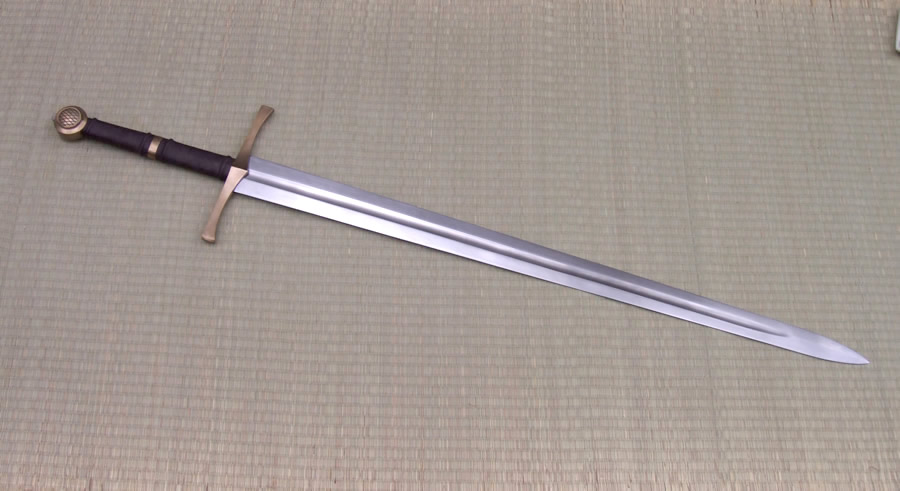 I recently got this in the form of a trade and it is a fantastic piece, unfortunately I'm short some money for my dream sword project that has started earlier then expected, so its getting sold now rather then later when I could grow attached to it, a brand new Jeffery Robinson Crusader Excalibur with a appleseed edge by Lukas MG so its razor sharp, has bronze grip spacer and is the exact piece in the pics, I had it sent to Steve Huerta to make a scabbard for it but if you choose not to get the scabbard I am looking for $2200 shipped in the CONUS and Steve will ship it directly to the buyer. Payment Via Paypal F/F or Goods & Services plus 3% for fees. Thanks for looking