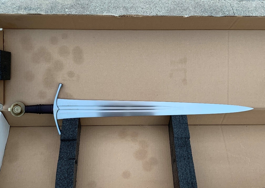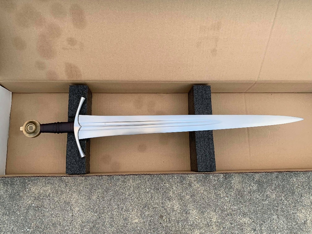 in any case - the sword is in excellent condition, and has only been used occasionally in milk jug cutting. No other cutting, sparring, whatever. It's spent most of its time in the box it was shipped in, mostly being taken out for the occasional re-oiling.