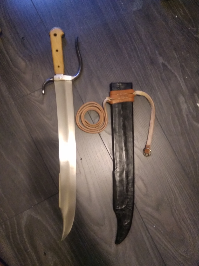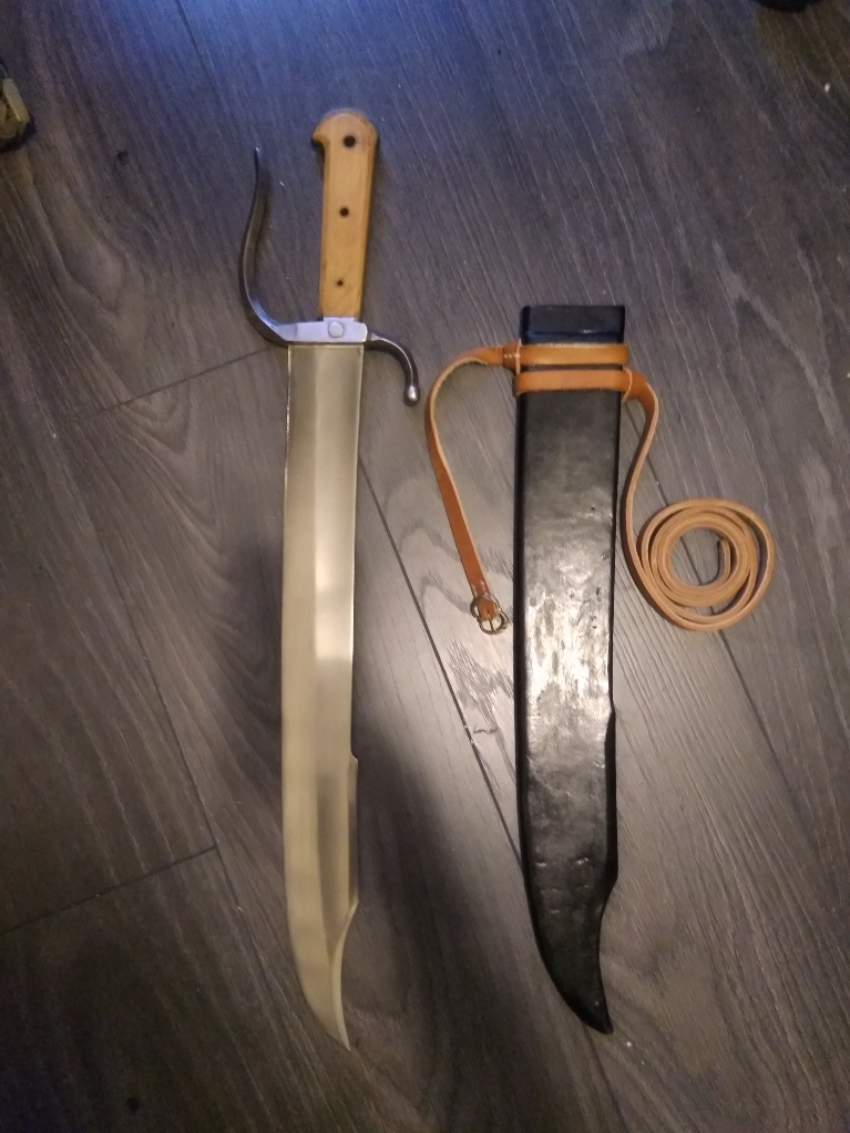 Gorgeous late 15th and 16th century German Messer made by Landsknecht Emporium, this one is complete with leather covered wood scabbard, is well finished, and a correct custom hanger. Blade is excellent and balanced, blade is semi sharp. $445 with CONUS shipping included, PayPal preferred. International shipping would have to be calculated. Item is in the USA. I having trouble uploading images (first too big, now to small ugh), I will figure it out shortly otherwise email me for them at panzerknacker44@hotmail.com.