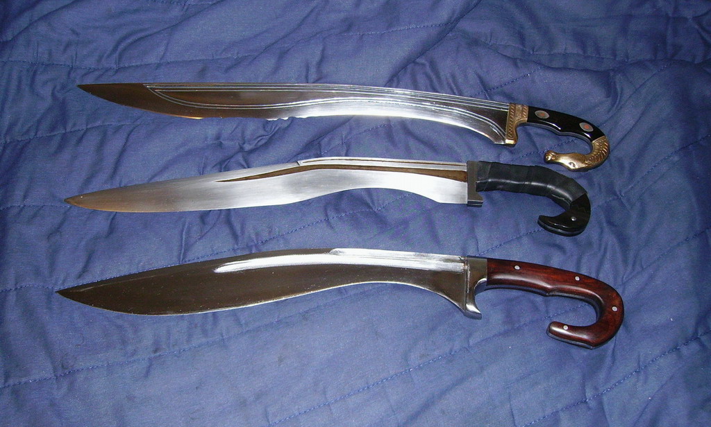 Accurate reproductions of the Falcata/Kopis/Makhaira family of swords (Or, to coin an acronym, FKM swords) have typically been hard to find on the mass market. Most makers seem to say, “hey, I’ll make a forward-curved sword, like a long kukri, and we’ll call it good”. Little research or study is done on these swords, and it shows. Even some higher-end makers don’t always hit the mark. Lately, however, there have been a few developments that have given me some hope. I am here to discuss two of these reasons for hope: the Kris Cutlery Kopis and the Great Ghurka Khukuri Kopis.