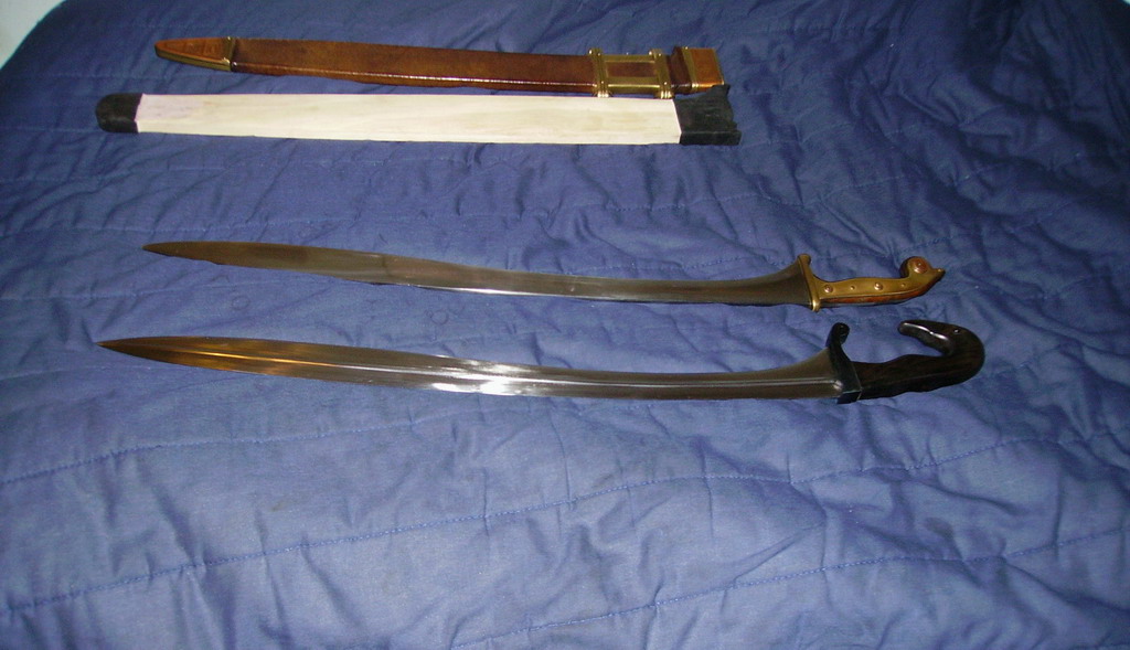 As mentioned, there are a few – very few -- fairly accurate kopides on the mass market. There are still no good falcata replicas on the mass market, period. Not a single sword marketed as a “falcata” is anywhere near accurate. Most makers (Windlass, Deepeeka, and a few others) base their falcatas on the Del Tin falcata, which was flawed from its inception. Windlass once made a decently accurate budget-level falcata with a wood horsehead hilt, but they quickly discontinued it (it was too accurate, I guess), but there’s been nothing since. Well, I just happened to stumble upon a maker of kukris (khukris, khukuris, spell it how you want) in Nepal who advertised a kopis. I took one look at the picture and said to myself, “huh, that’s not a kopis, it’s a falcata” (and yes, there are differences between the kopis and the falcata other than the fact that one is from Greece and the other from the Iberian peninsula, but I don’t want to bore you with an exploration of that right now). It was priced right, and only really lacked in one typical characteristic, that being a sharpened back or false edge. I put in my order and asked if the smith could add a false edge for me. He did so for no extra charge! So, when the package arrived all the way from Kathmandu, I was pretty excited. And what do you know, it’s a falcata! It’s capable of cuts and thrusts and does both well. It’s light and fast in my hands and is fun to wield. It is not based on any particular historical example, but it does have some characteristics of a couple originals. It does bear some similarity to the well-known falcata in the Metropolitan Museum of Art in New York, albeit shorter and a bit chubbier. In fact, the grip looks kind of like the cheesy replacement grip that was on the Met’s falcata (and since removed, from what I understand). It also bears some similarity to the Cerro Muriano falcata, which has a short and wide blade. So, how accurate is it?