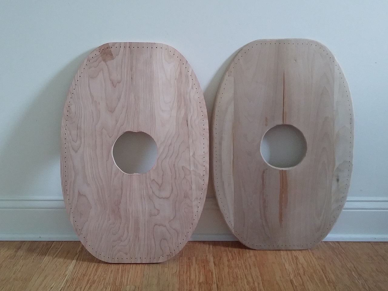 Hello again. I've had these shield boards sitting around for two or three years waiting for bosses. Ideally I'd like them to fit into a 5th century BCE setting. It would be easier/cheaper to finish them with round bosses rather than custom-made wooden barleycorn ones, but I'd thought that round bosses on oblong shields was a combination that dated to later centuries.