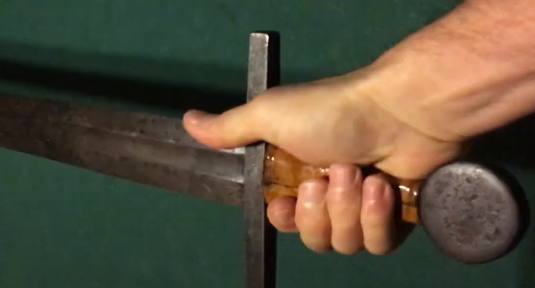 The grip is appropriately sized- hugging the hand between pommel and guard. This feeling of snugness adds to the stout feeling in the sword.