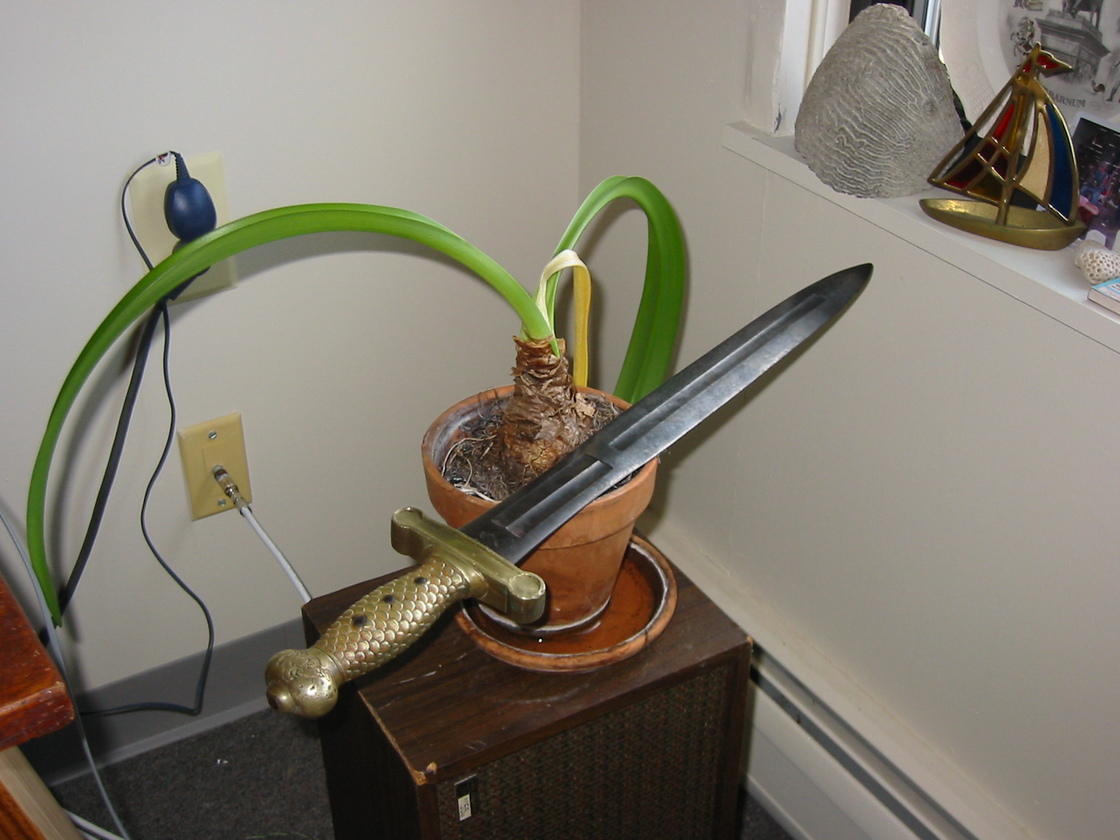 Exhibit 19: This is the sword I am replicating to see if I can get the weight and balance correct. Over 1.2 meters long with a blade over 1 meter long itself, this is a purely lenticularly-bladed weapon. All the while, the museum exhibit weighs in at only 1.5kg, I will get pictures of my project this weekend.