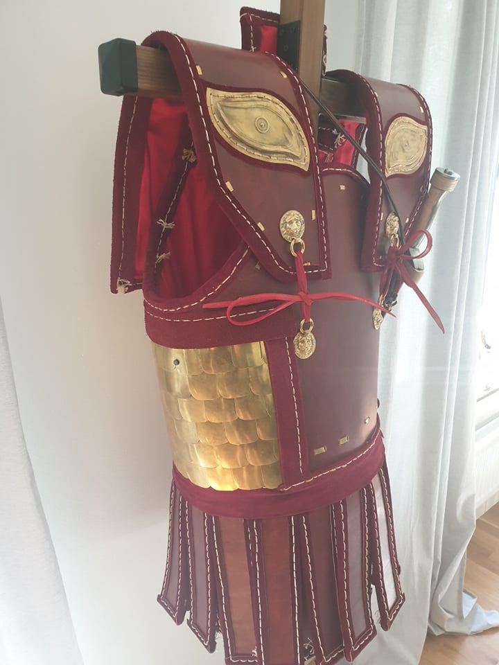 On his website ([url] www.hellenicarmors.gr) he has quite a few examples of his earlier works so I chose as a template one that I liked and we proceeded. I also told him what decorative items I would like on the thorax like lionheads, eyes, etc. and I sent him my body measurements so that the armor will fit me well. During the construction we were in often contact where he kept updating me with photos and I could adjust things to my taste (if at an early stage of course).