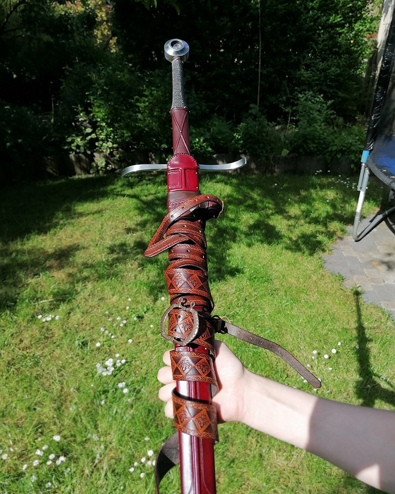 This is a custom scabbard made by Brian Kunz from DBK-Scabbards for the Albion Munich XVIIIb Longsword.