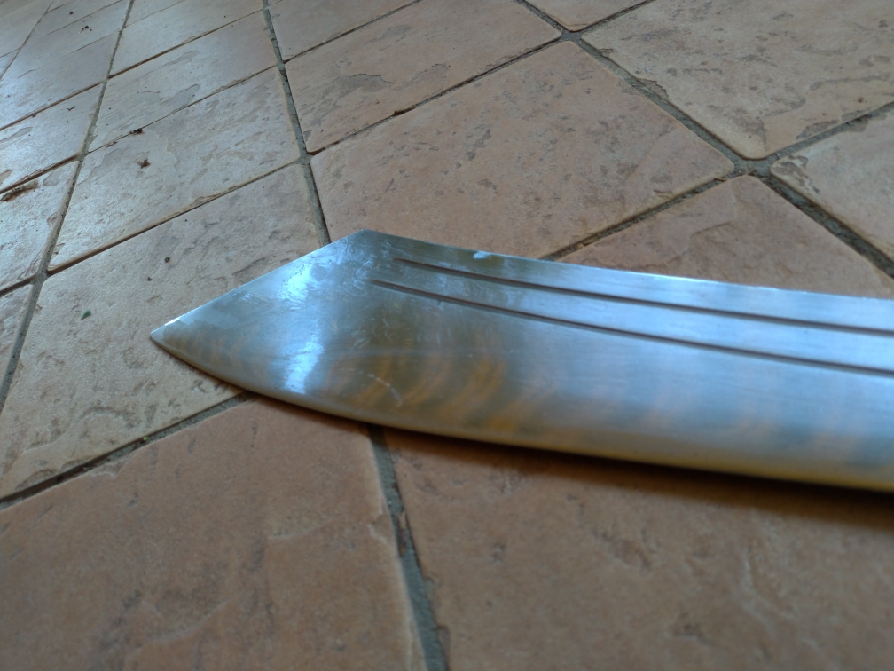 The sword is in good condition, is sharp and has only made a few light cuts on vegetables and bottles. It has some slight marks on the blade, I hope they look good in the picture. I think it could be fixed, but I prefer to leave it that way and leave the choice to the next owner.Please that the blade was oiled when the photos were taken.
