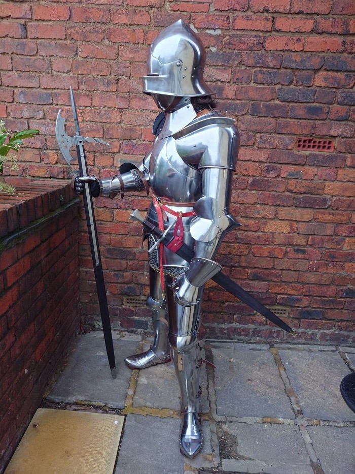 Due to house renovations I now need to sell my 15th Century Milanese English Import Harness, it is based on the armours that Edward 4th imported for his men at arms from Milan. Dr Capwell covers these in his "armour of the english knight" Sale is only for the armor and does not include doublet, maille or weapons.