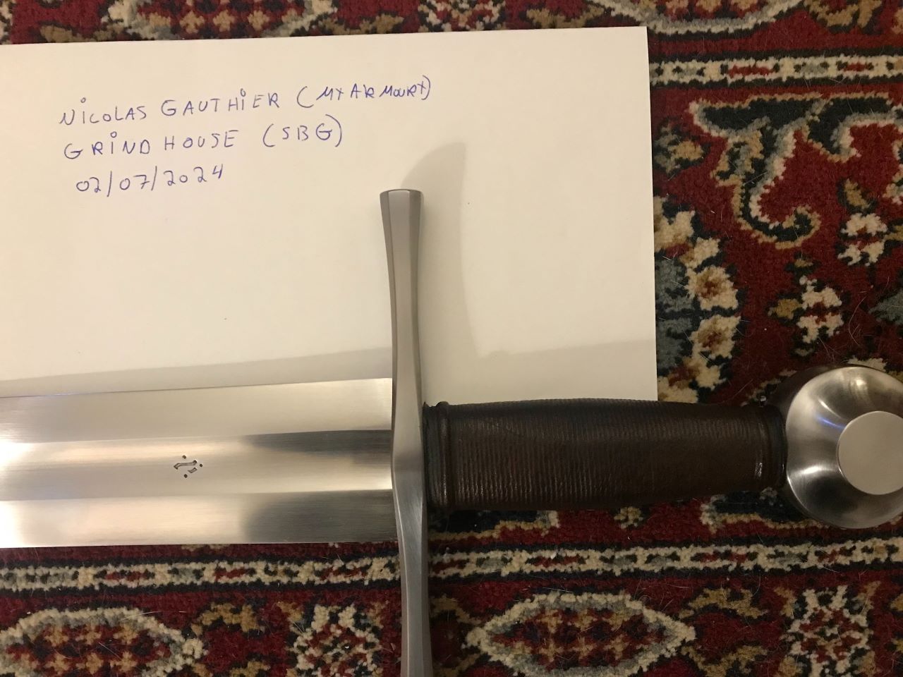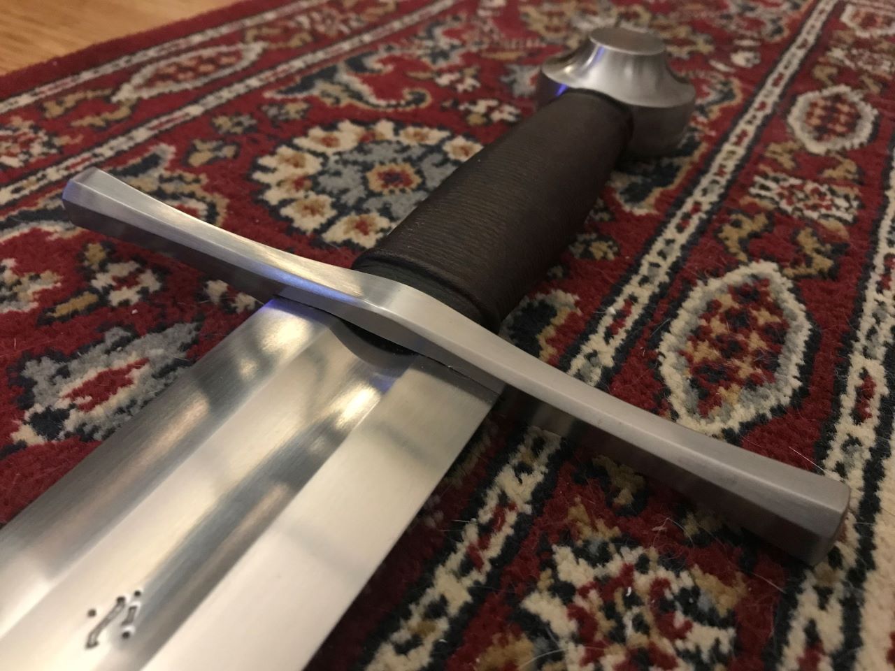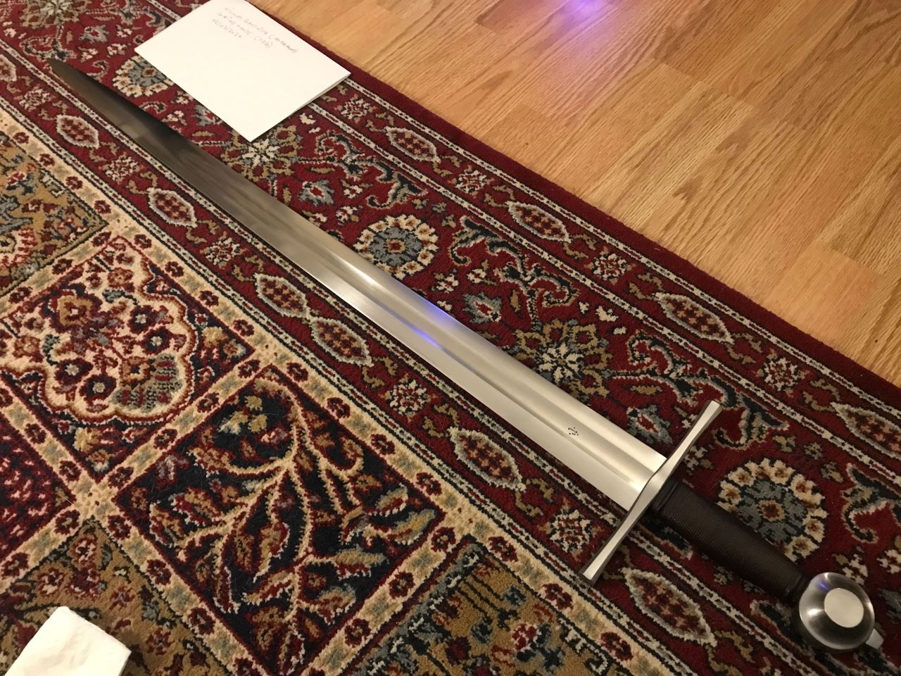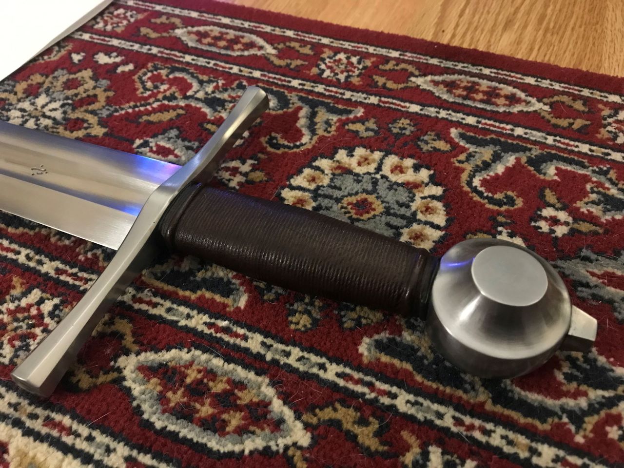 I bought this Albion knight new from Kult of Athena in 2020. It is in mint condition. It was never used for cutting. It was only displayed on my sword rack. I kept it oiled regularly. There is no ding, rust, black spot or anything like that on the blade or on the hilt. The grip color is dark brown. This one came very well sharpened IMO.