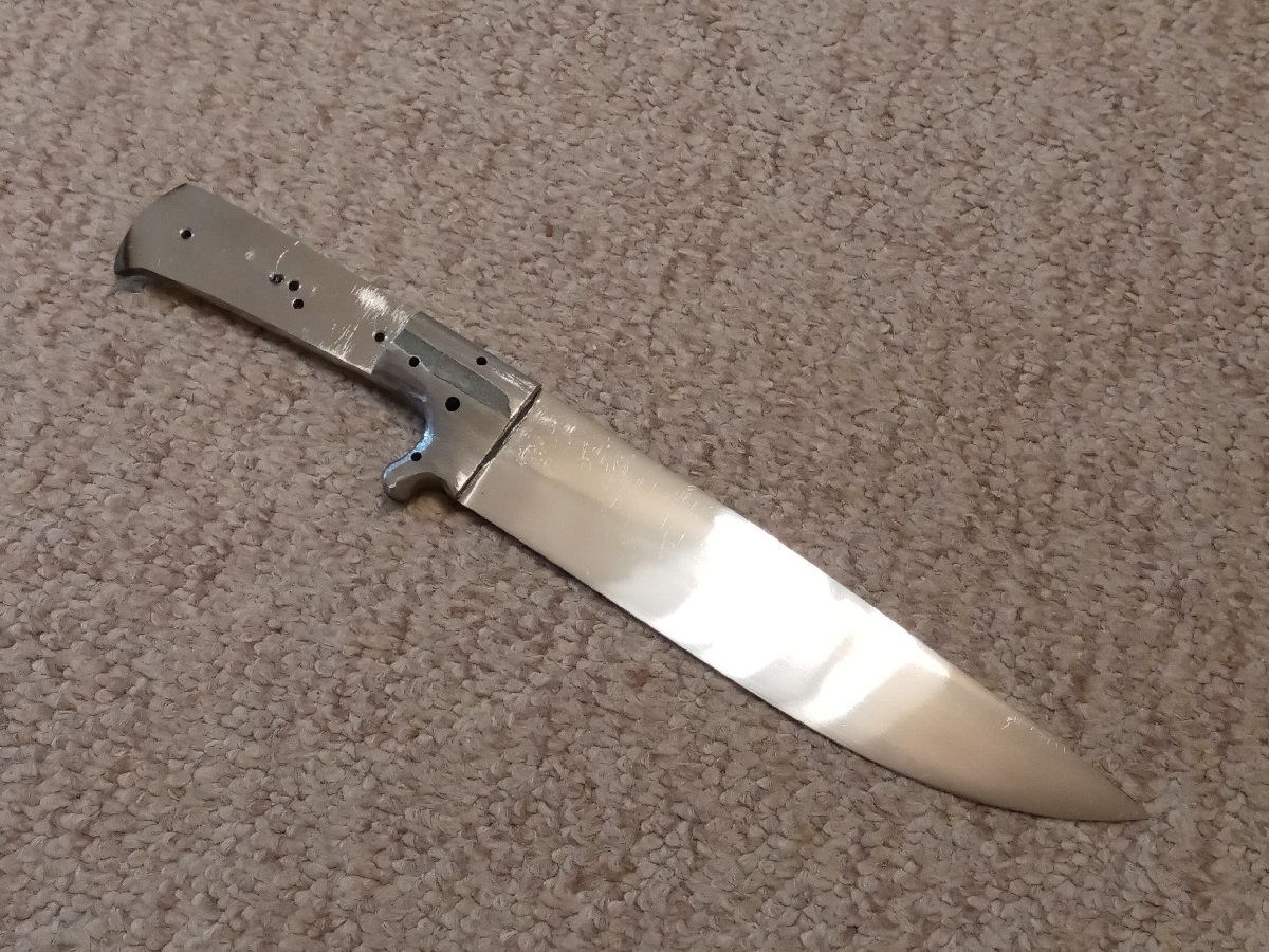 First thing will be reshaping. As photographed, I've planned the butt to be bird's head-shaped, but I think I'm going to add a flat end instead. With the blade's overall taper, the original slightly dropped point seems preferable to a clip. But I can always add a clip later if I change my mind.