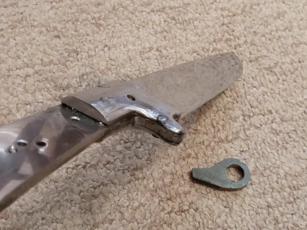 Things had been going swimmingly (or about as much as can be expected); the scales are glued and nearly done shaping and the nagel was ready to be set. However, I've been hammering on the nagel pin for the last 20 minutes and can't flatten out that last millimeter and a half, which is leaving the nagel at the point where it won't completely pull out or rotate in the hole, but it won't stop wiggling either.
