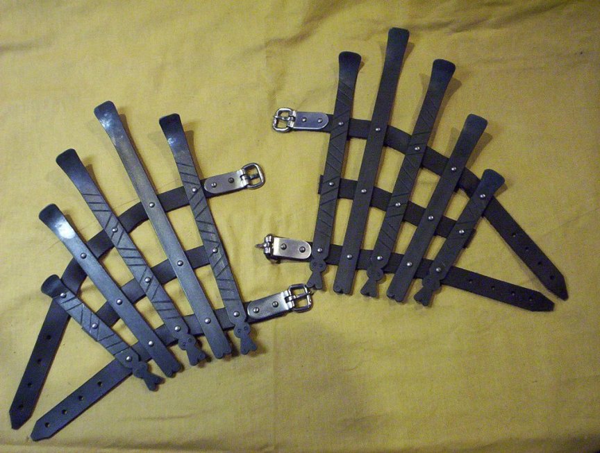 I haven't studied the Viking/Dark Age stuff in months, so I'm not even sure if it was Vendel or Sutton Hoo... But, there were a pile of bars such as these found cluttered in one of the gravesites, and although there was no way of telling what they were, the idea that they were splinted vambraces arose as one of the more popular speculations and as remained so ever since.