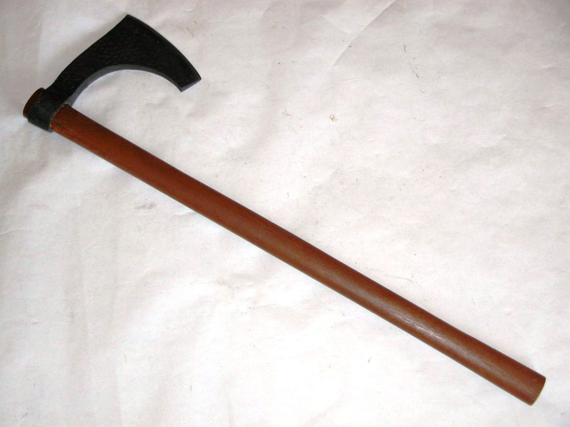 Cutting tools of the Vikings commonly doubled as weapons of war when these famed raiders sailed on pillaging forays. Their axes were certainly top of the list and came to symbolize the terror spread among their foes. Varying greatly in size, from small throwing axes to the mighty Danish Axe, these were the most commonly used weapons of these Nordic warriors. Paul Chen’s Bearded Axe (1073-GT) is typical pattern, capable of cleaving helms or armour with impunity. These were used by the Vikings in 10th century Scandinavia and 11th century Britain.