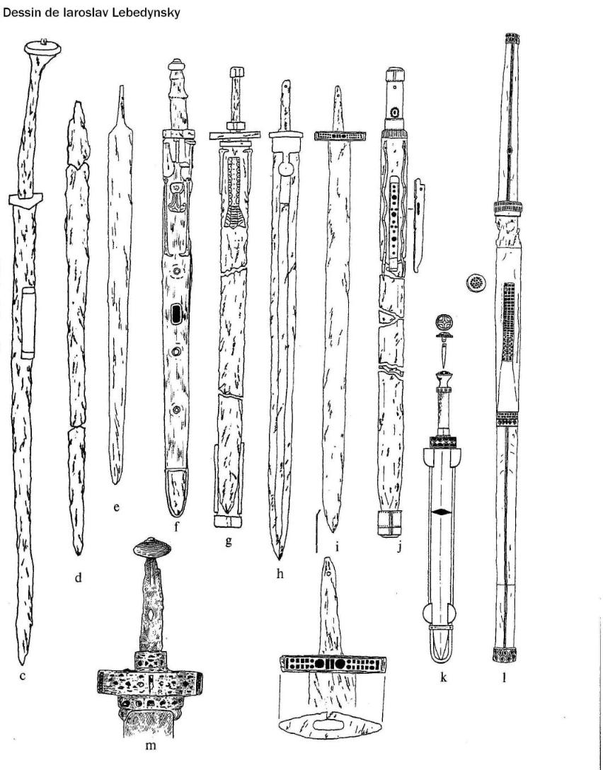 However, the sword of Brout (in Ossétie) is a Alaine weapon of the end of IVe century after J.C whose handle measures 34cm! The warriors of Alains elite were "cataphractaires". They thus were very well protected. One can think that they could thus fight with a two-handed sword. It was not the case of the people which used shields.