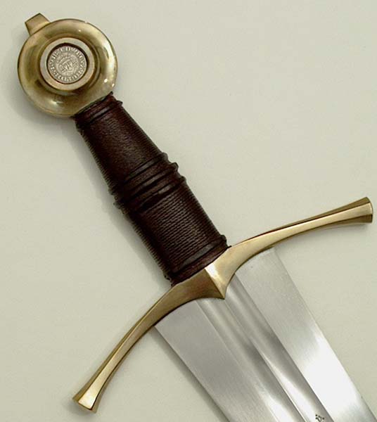 I've got a Sovereign too. Its a good sword. The bronze guard and pommel are standard. The coin in the pommel is something Chad got elsewhere - a replica coin of Edward I, that fits quite nicely (Strangely, I have one of those coins too)