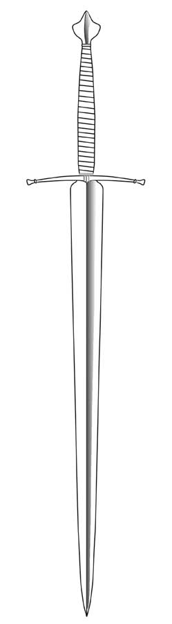 Joel (and everybody), you may be interested in the stats on the original. From the Wallace Catalogue of European Arms(which I have): A474: L. blade 46 1/8" (117.0 cm), W. 2 3/8 (6.0), L. quillons 11 (28.0), L. quillons to pommel 13 1/8 (33.3), L. pommel 4 1/2 (11.2), Wt. 6:6 (2.892).