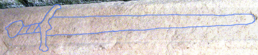 I have attempted, rather crudely, to outline the sword. There is some distortion because of the angle at witch I took the photo.