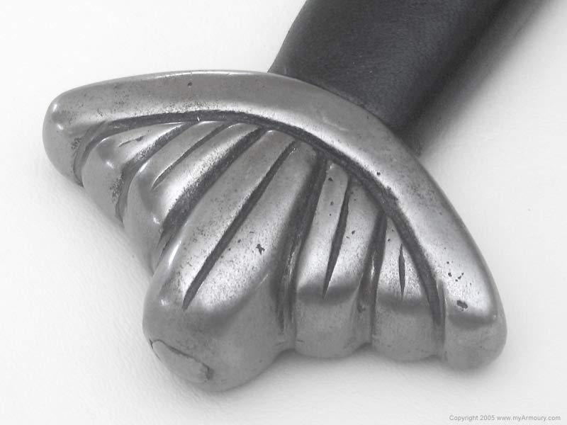 Overall length: 34.25" Weight: pounds Width of guard: 6 3/4" Blade: 28 5/8" long; 1 5/8" tapering to ." Fullers: 21 1/8" long Grip and pommel: 6" Point of Balance (PoB): 4" from guard yes i just read about the casting flaws, i just know the first even i'm at i'm gonna get serious rust in these spots. now the peening on mine is much worse. i'd say a half dozen peen marks on teh pommel itself, and deep discolored ones too. |