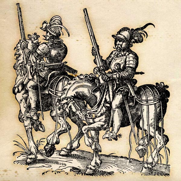 This guy has the equivalent of bow, lance-estoc by his musket and pistols... Just think of it that these things were for these riders single-shot only and he would have to drop them and go to the next one. That is why he carried up to five pistols. Expensive!