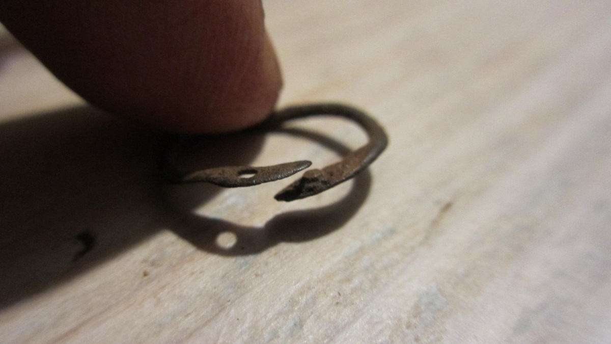 From the close-up photograph this is also clearly of demi-riveted construction. There appear to be a few missing rivets of round section.