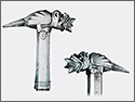 As the use of plate armour spread, so did the use of impact weapons. Designed to pierce and/or crush armour (and those who wore it), they would have been far more effective against plate than the edge of a sword. One of the more interesting and beautiful examples of a warhammer dates to the late 14th century. Italian in origin, the head is made in the shape of a dragon. From its mouth emerges the hammer's head; the beast's tail forms the spike.