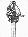 schiavona. Its bars of flattened-triangular section each originate at the cross-guard and terminate near the pommel. Between each bar are several connecting bars, forming the completed hilt. The only hilt ornamentation can be seen in the form of incised lines decorating the ends of some of the bars.