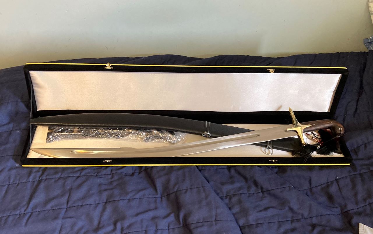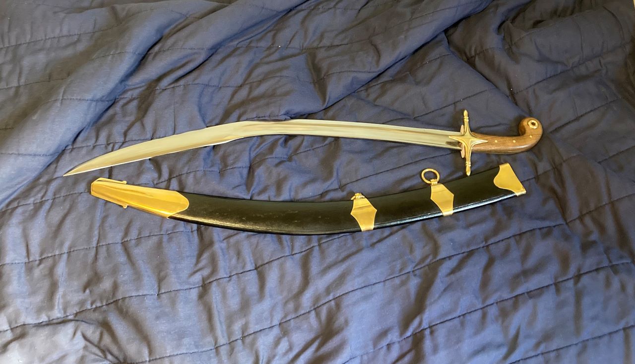 Universal Swords, out of India, is best known for its line of 19th-century military swords and sabers. They seem to be one of the better-regarded makers of affordable swords. They have recently produced their version of this famous Turkish sword. Their kilij is a shorter version, more suited to infantry than cavalry, often called a pala (although, see the discussion above regarding terminology and how little I actually know). This would be the equivalent to the sword my old acquaintance owned. I am going to say that it’s a very attractive sword, more so than the Ottoman Swords kilij mentioned above. However, how close does it come to that historical original? Let’s see…