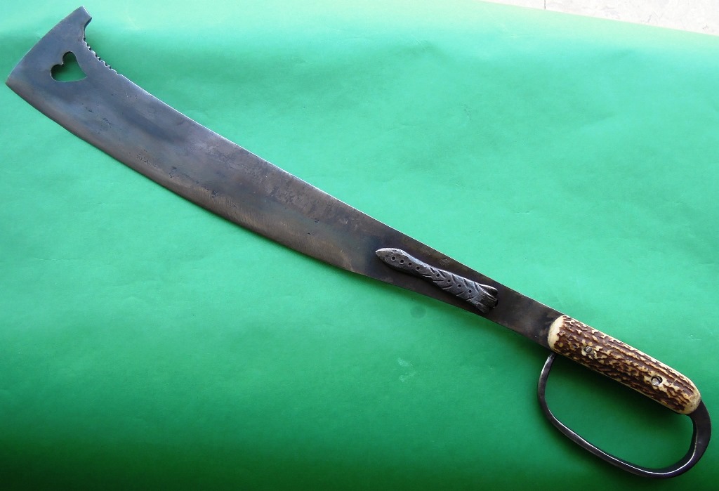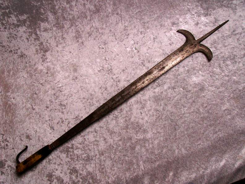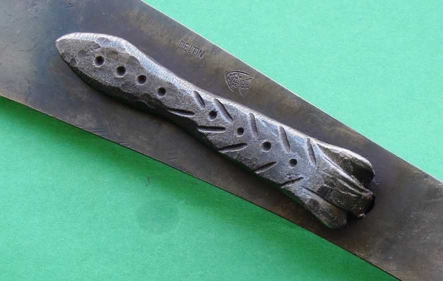 We can see very clearly that, except for the shape of the tip which ressembles the Invalides falchion, it is obviously the same construction with the "gancio" forming a branch guard, and the two scales protruding past the tang, in a very classical fashion on Italian roncole. But it is a relatively immediate descendant of this kind of thing: