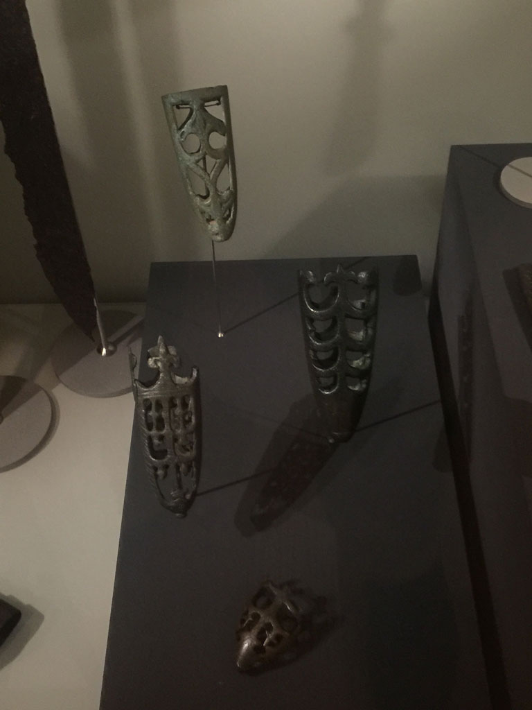 That depends on what you mean by 'fleece'. Where I come from that word is used both for sheep skin with the wool still attached and for the 'blanket' of wool you get when you have just shorn the sheep. In this case I meant the former. Sheep skin with the wool attached is not 'fur' to my mind, fur is things like beaver, wolf, fox, sable or mink skins or something which were generally much to valuable to be used as a scabbard lining unless you were a lord or a king or something who could afford to line his scabbard with a luxury like product like that. A fleece/hairy sheep skin lining adds at least another centimetre to the thickness of the scabbard so fabric linings may have been an effort to slim the scabbard down. Fleece/hairy sheep skin in my experience has the advantage protecting better against rust since you can impregnate it with some kind of oil and it does a better job of preventing the sword from sliding out of the scabbard. Scabbards also remained pretty chunky well into the middle ages, at least in Scandinavia. In the Icelandic national museum there are several medieval chapes (probably German or English) dating to the 13-14th centuries which indicate that scabbards were pretty chunky during this period. The opening a the top of these chapes is in 3 or more centimetres high and the scabbard would have been correspondingly thick. The longer chapes on the below picture are positively massive.